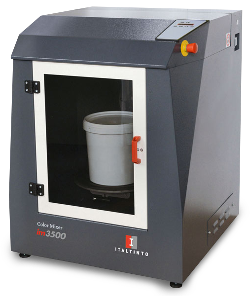 Fully automatic bi-axial gyroscopic mixer for use in professional paint stores and all kind of retail environments
